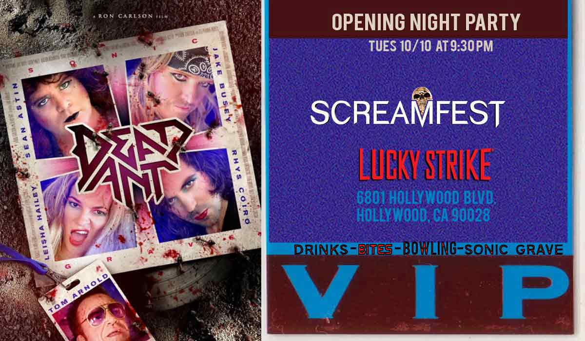 The Party following the screening of DEAD ANT will have it all, enjoy bites, beverages and bowling at LUCKY STRIKES (located in Hollywood & Highland.) Hear the cast perform LIVE with their band SONIC GRAVE!