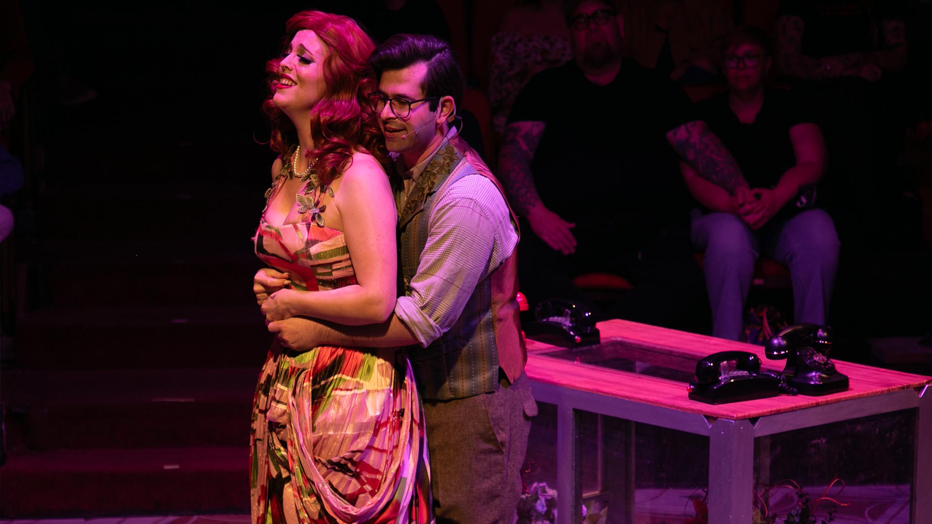 The best part is that if you have never gone to the Nocturne Theatre, it has one of the most intimate stages. The audience is in full circle all around the center stage. Upstairs you have a speakeasy which is perfect for before or after gatherings!