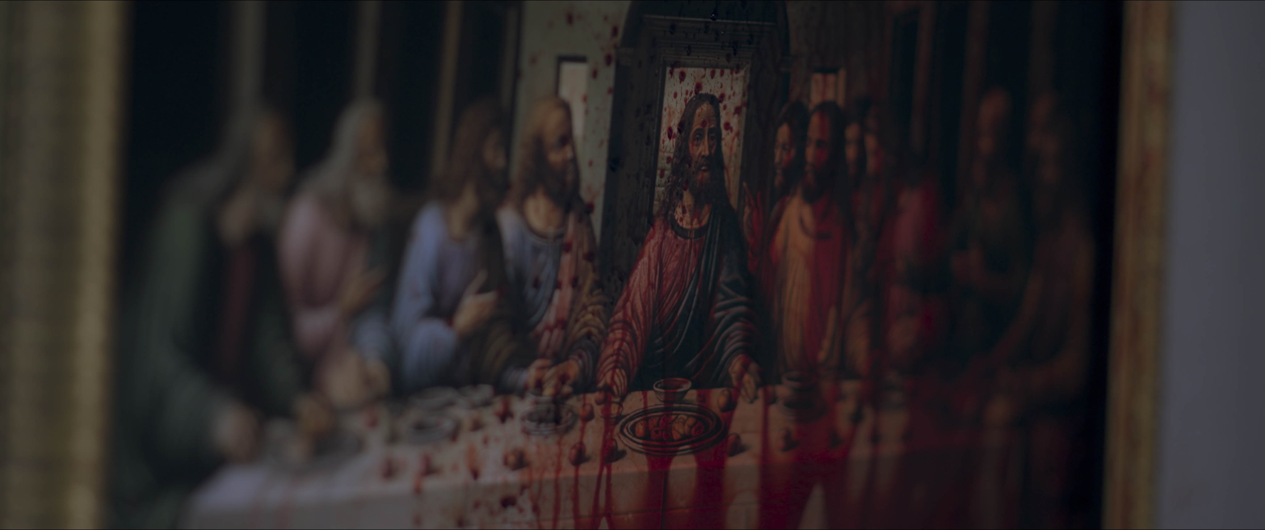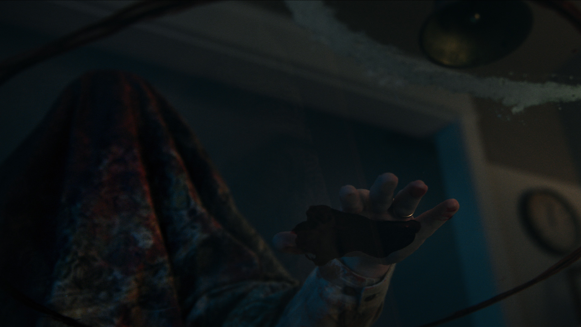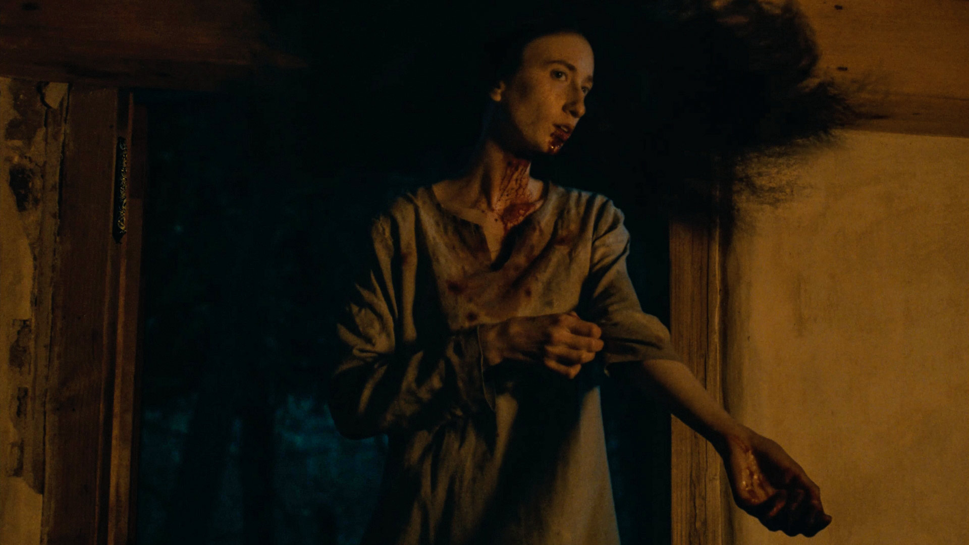 when she drills into the plaster… blood spills from the resulting hole?!