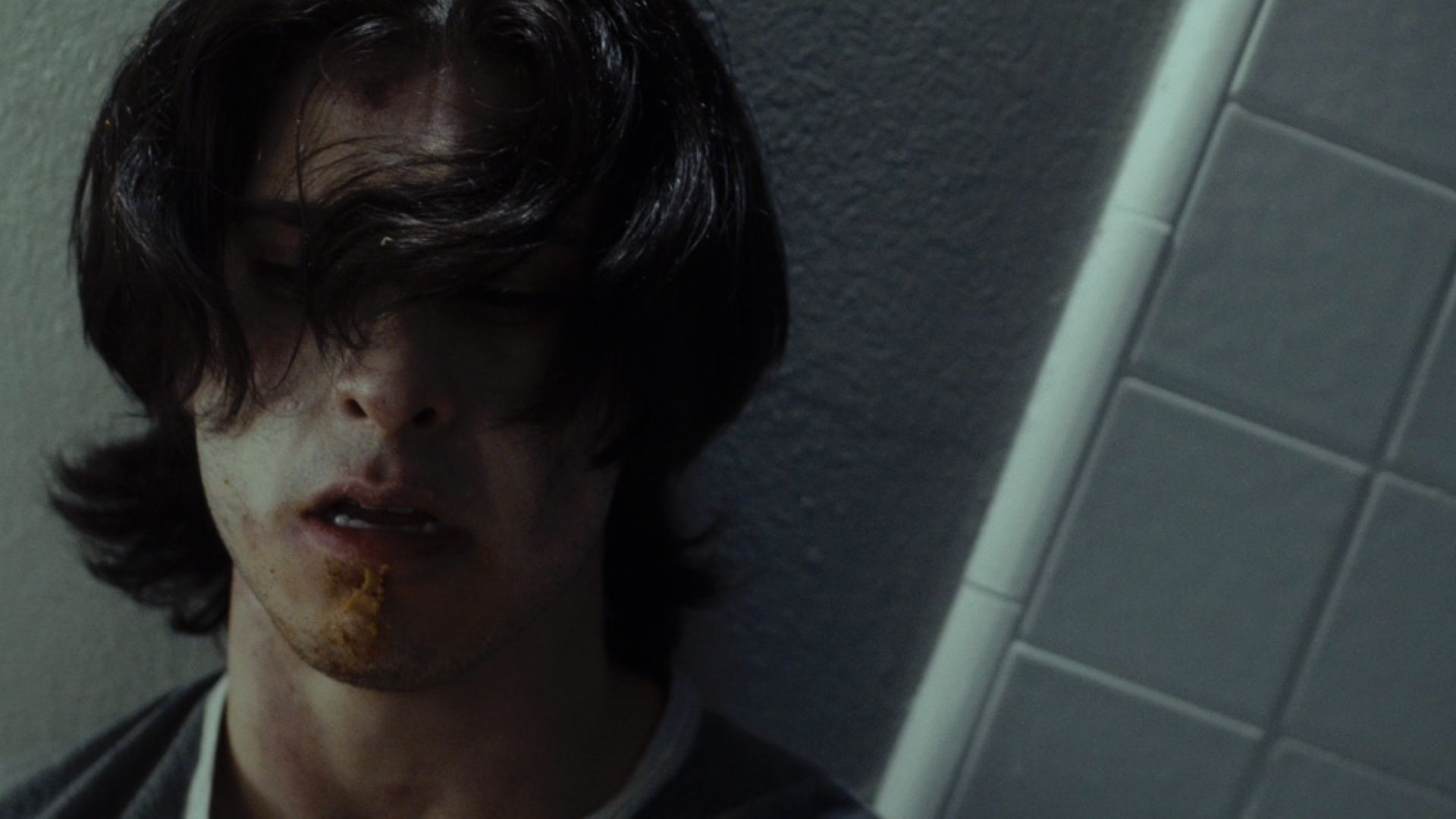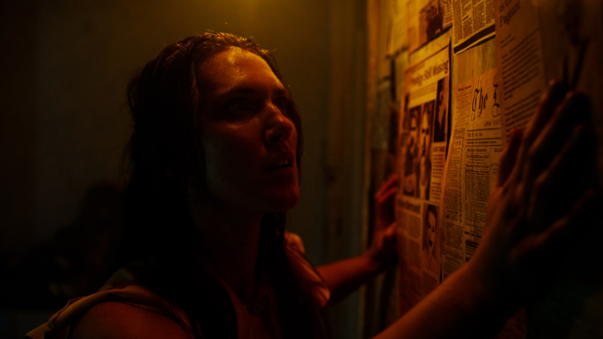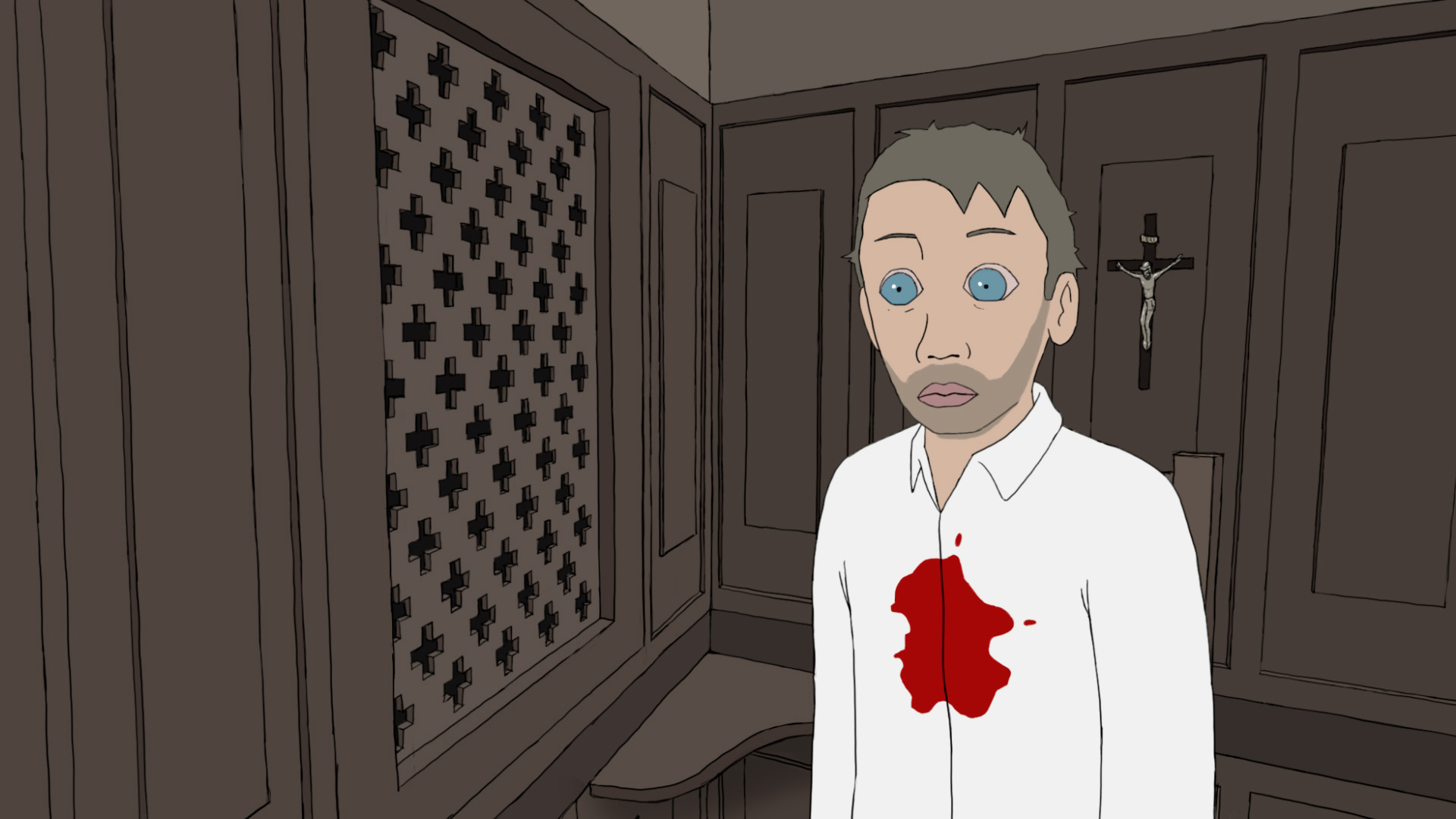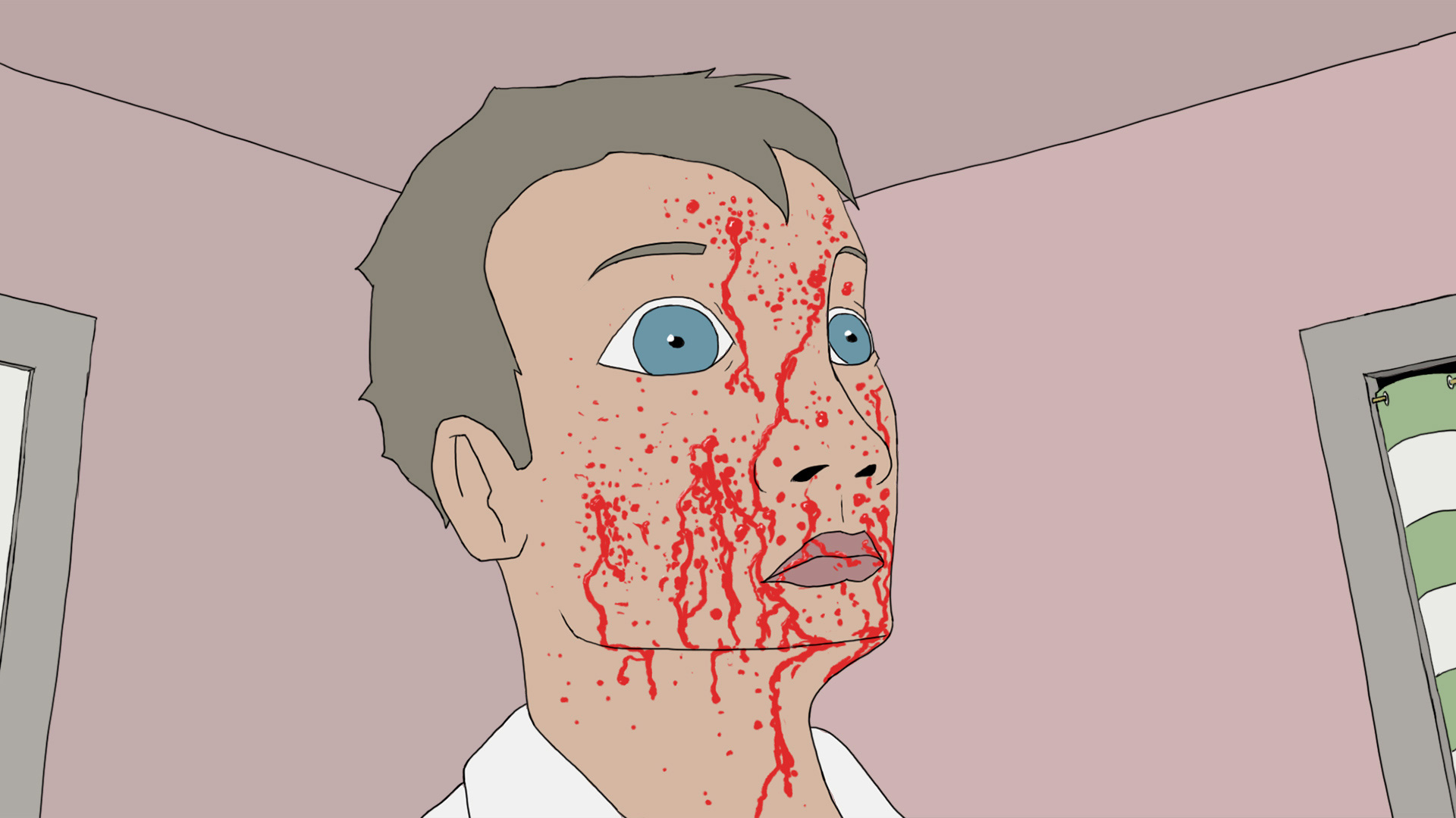 when she drills into the plaster… blood spills from the resulting hole?!
