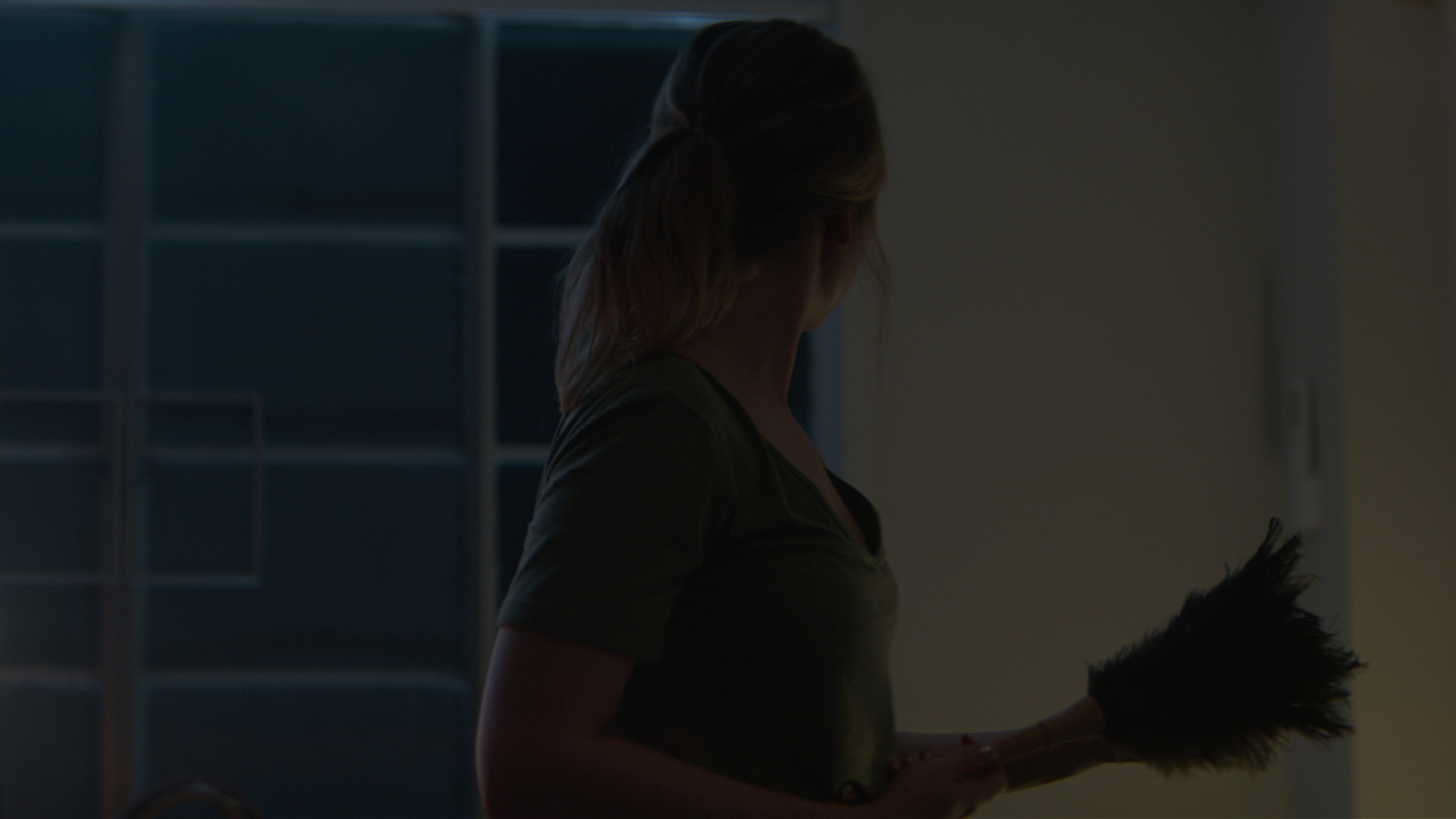 grieving the death of a beloved pet, as she decides to hang a new frame on her apartment wall. But