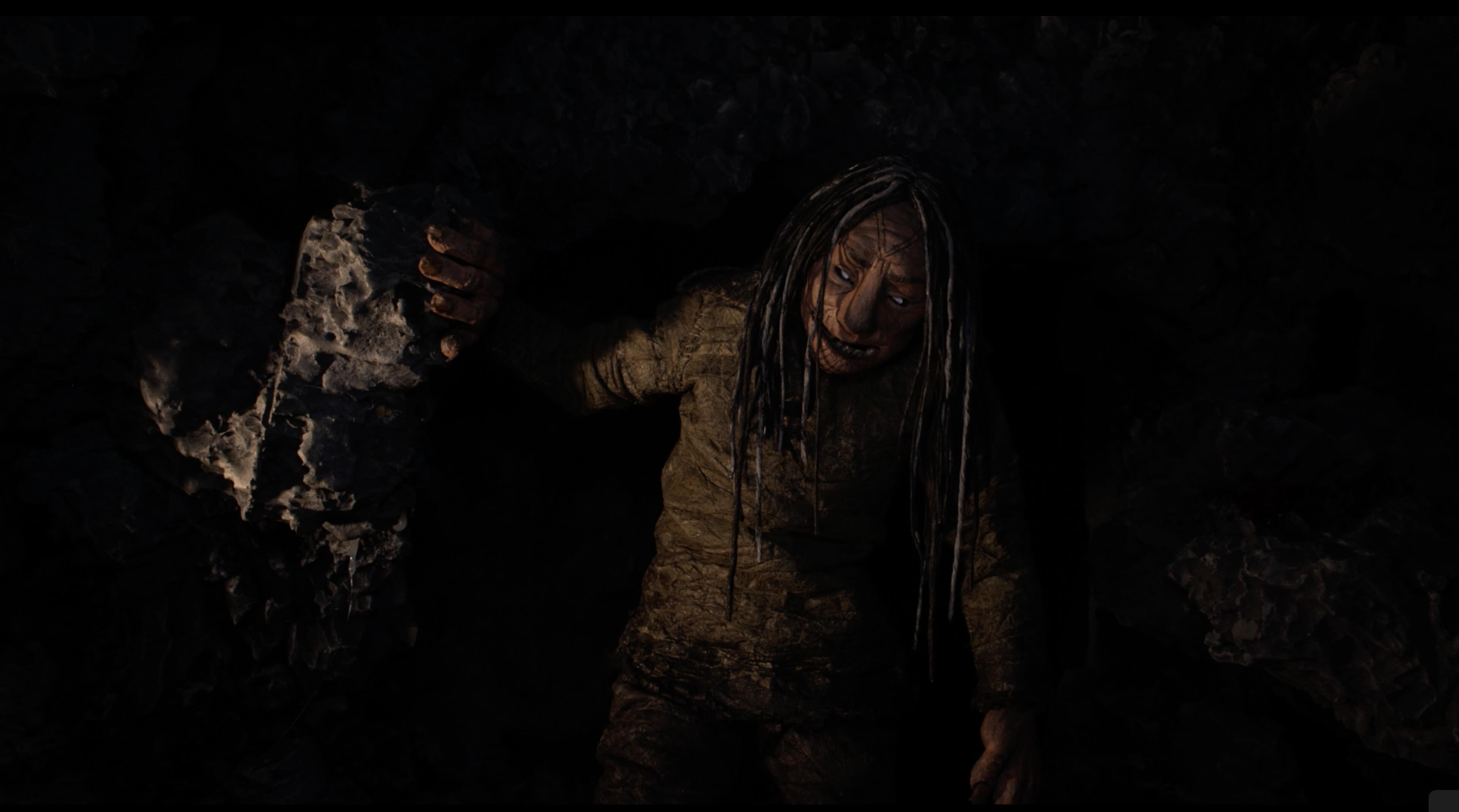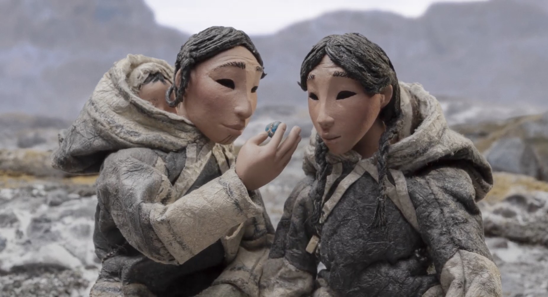 Two young women out for a walk follow a trail of coloured stones left on the ground, which leads them to danger. They are trapped in the lair of the Mangittatuarjuk, the Gnawer of Rocks. The women are terrified when they realize what the monster has been doing. The young women and their village must use the teachings of the elders to defeat the monster.
