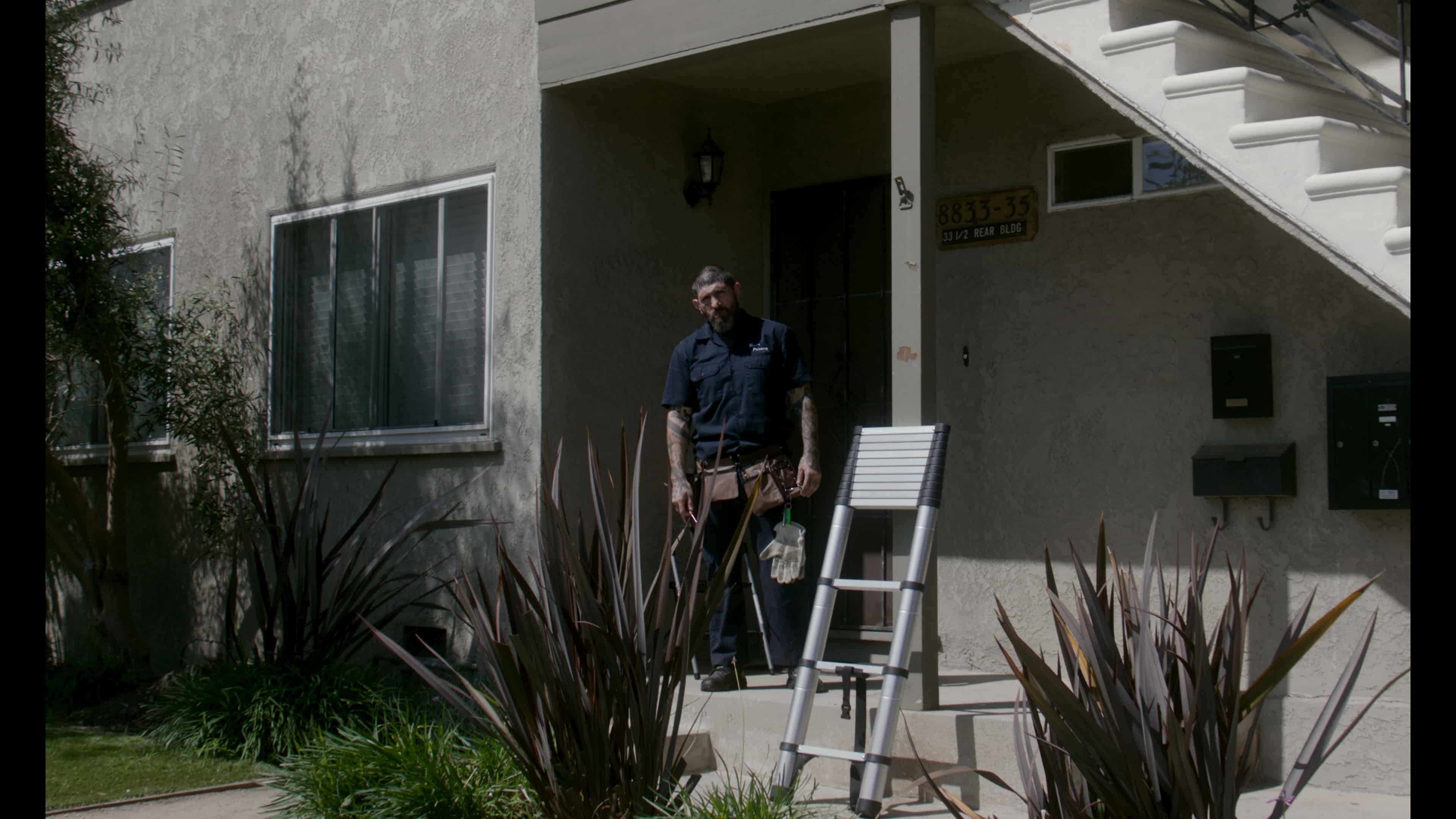neighbor Jerry ties and gagged in the bedroom, someone else steps through the front door: Gus, a