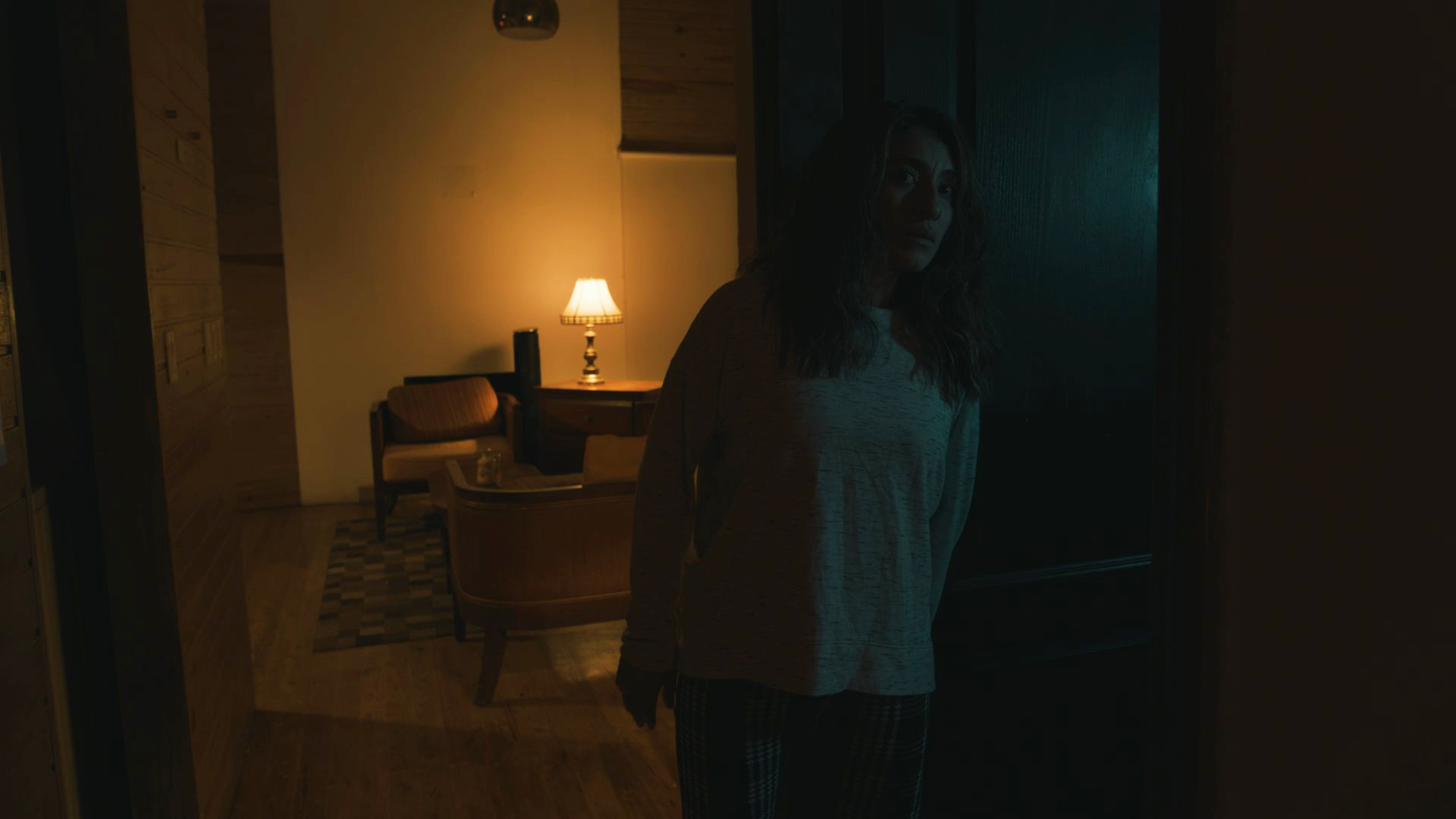 Shot entirely on in-home security camera and drawing on elements of analog horror popularized on YouTube, Dooba Dooba follows Amna as she arrives for what she assumes will be a typical babysitting gig. She realizes she’s very mistaken when she learns that Monroe, the girl she’s babysitting, is not only sixteen, but suffers from severe anxiety after having watched her brother get murdered when she was a child. Monroe’s behavior becomes increasingly unbearable until Amna questions whether she wants to stay, not realizing she has no choice.