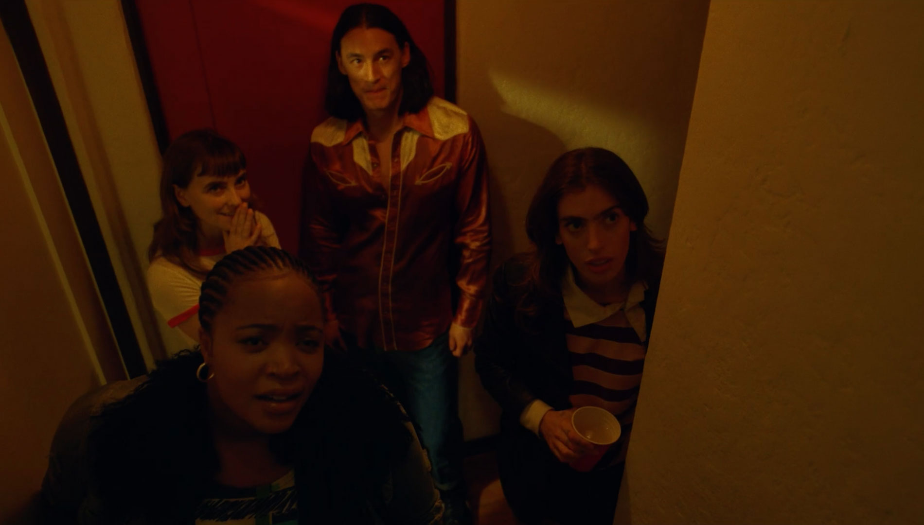 Doe eyed and in love, Anna attends the housewarming party of her new boyfriend Nico. The night quickly unravels as she meets his friends, some classic Hollywood pricks. Tales about ex girlfriends and Nico’s promiscuity swirl and her new lover also tells his guests about a “haunted” basement that he warns them not to enter. Anna starts drinking to suppress her discomfort, but instead becomes increasingly intoxicated and paranoid. After losing track of Nico, Anna escapes his friends and searches frantically for him in the maze-like house. She follows an odd banging sound down to the foreboding basement where the true horror is revealed.