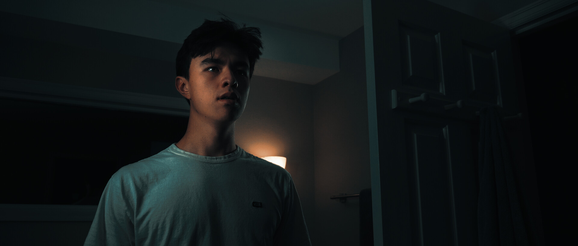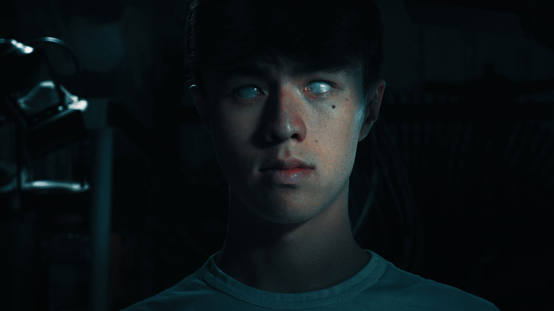 An ominous sound alerts a teenager that an imperceptible malevolent presence may be resting right beside him.