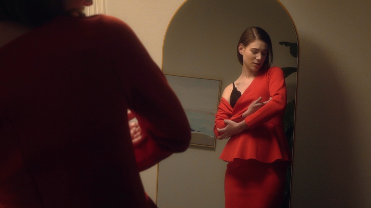 A paranoid woman attempts to go about her day whilst being deeply afraid of a potential watcher who she fears is following her.